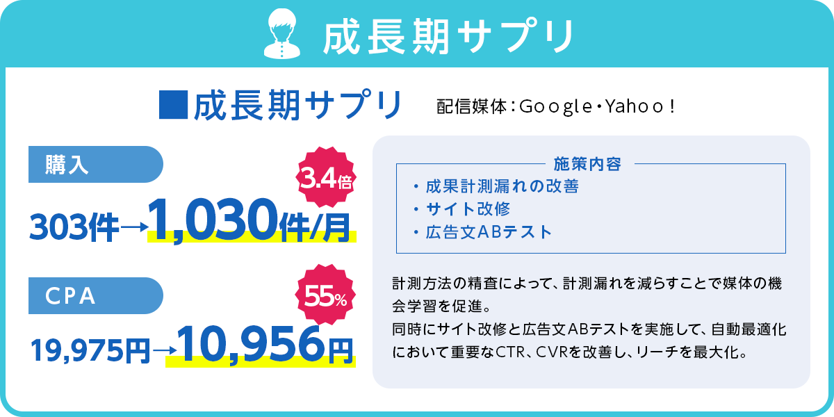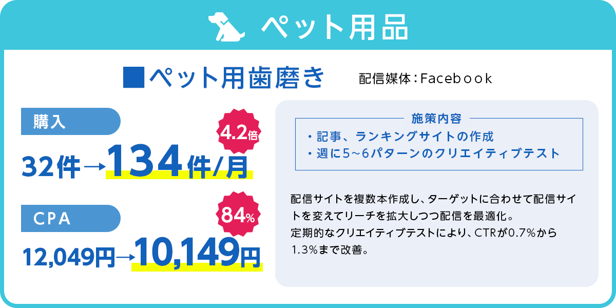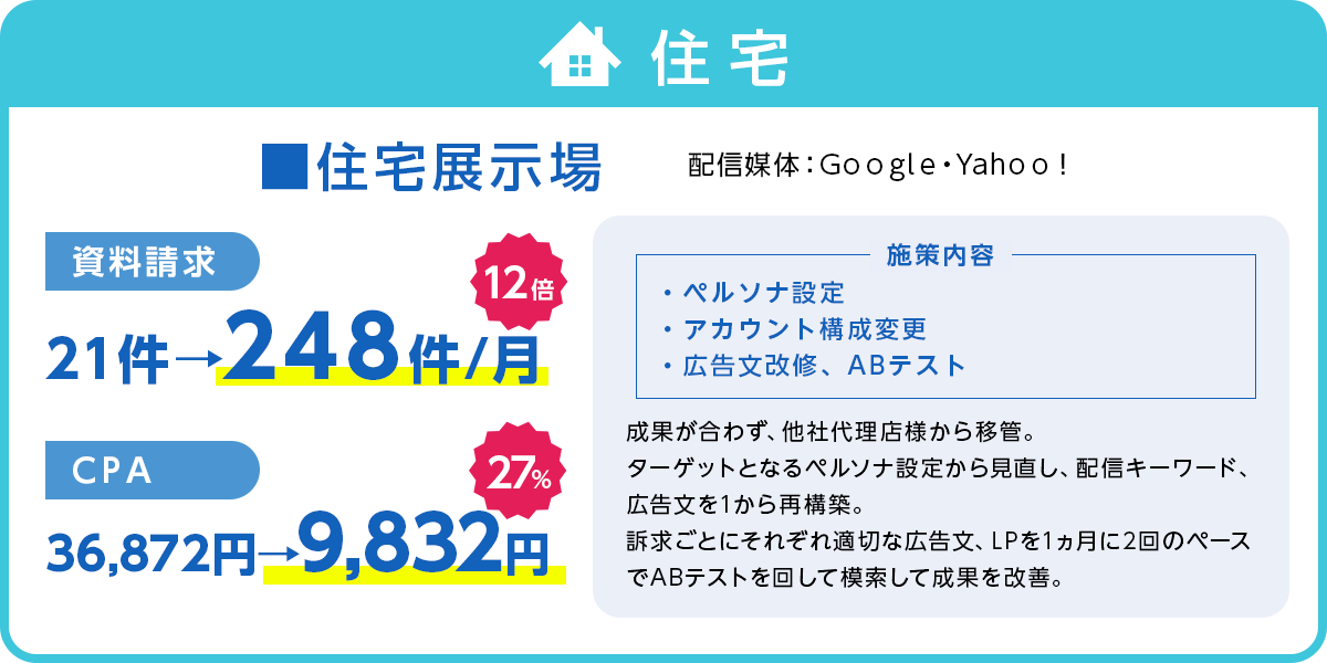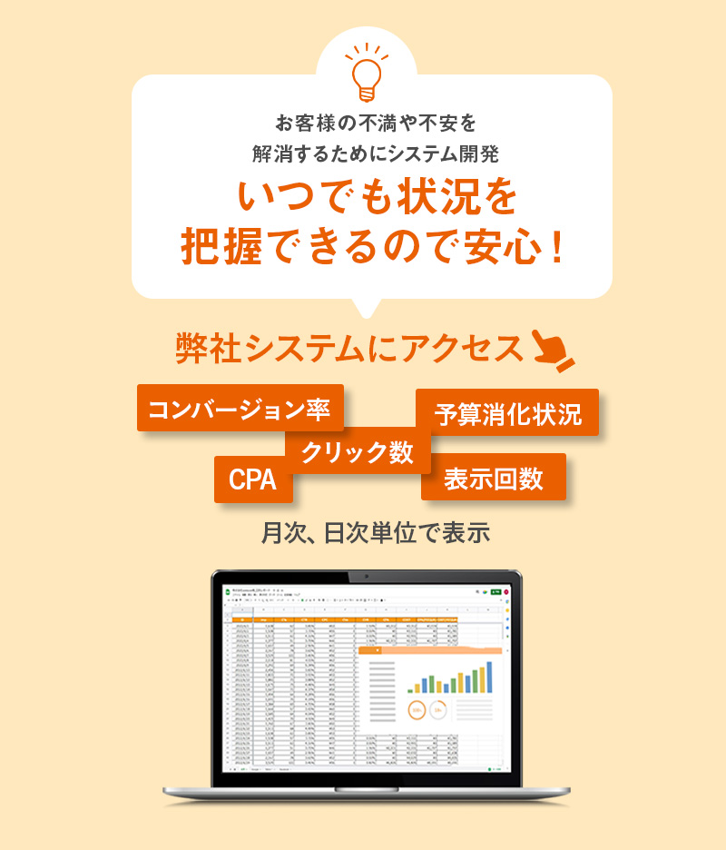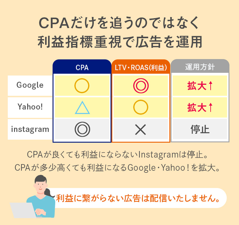 媒体による運用手数料の変化もございませんので、いただいたご予算で利益を最大化するためのメディアプランを組み、広告を運用させていただきます。